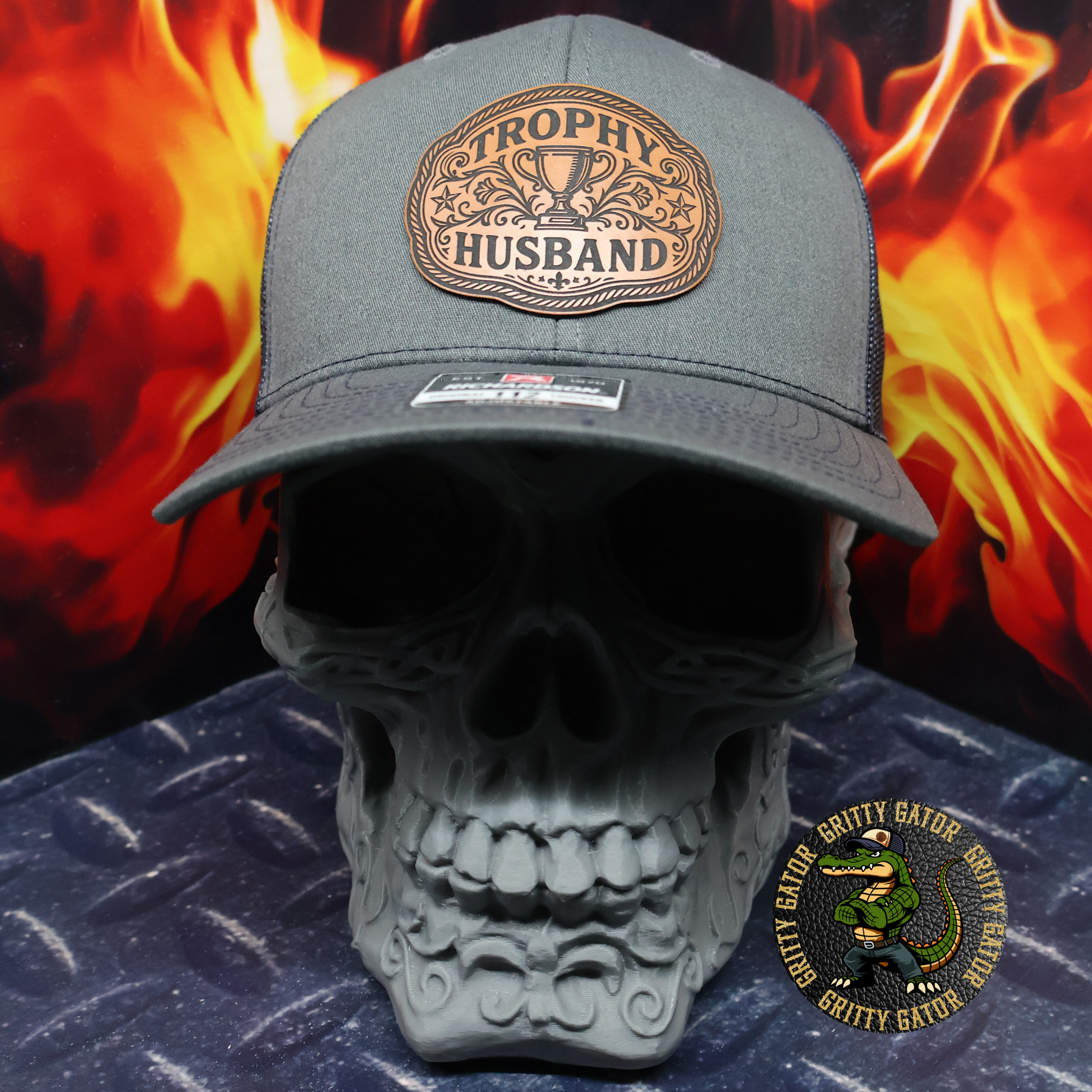 Polish up that dad bod and wear your title with pride — this "Trophy Husband" patch hat from Gritty Gator is here to let the world know you're taken, treasured, and probably really good at grilling.